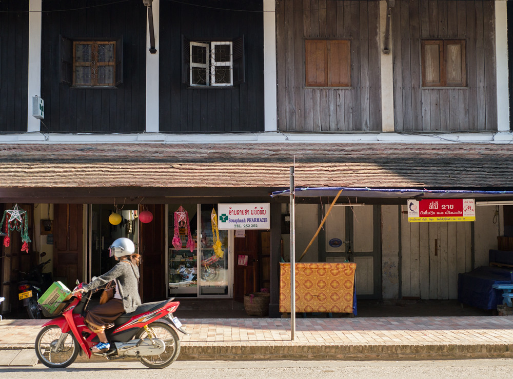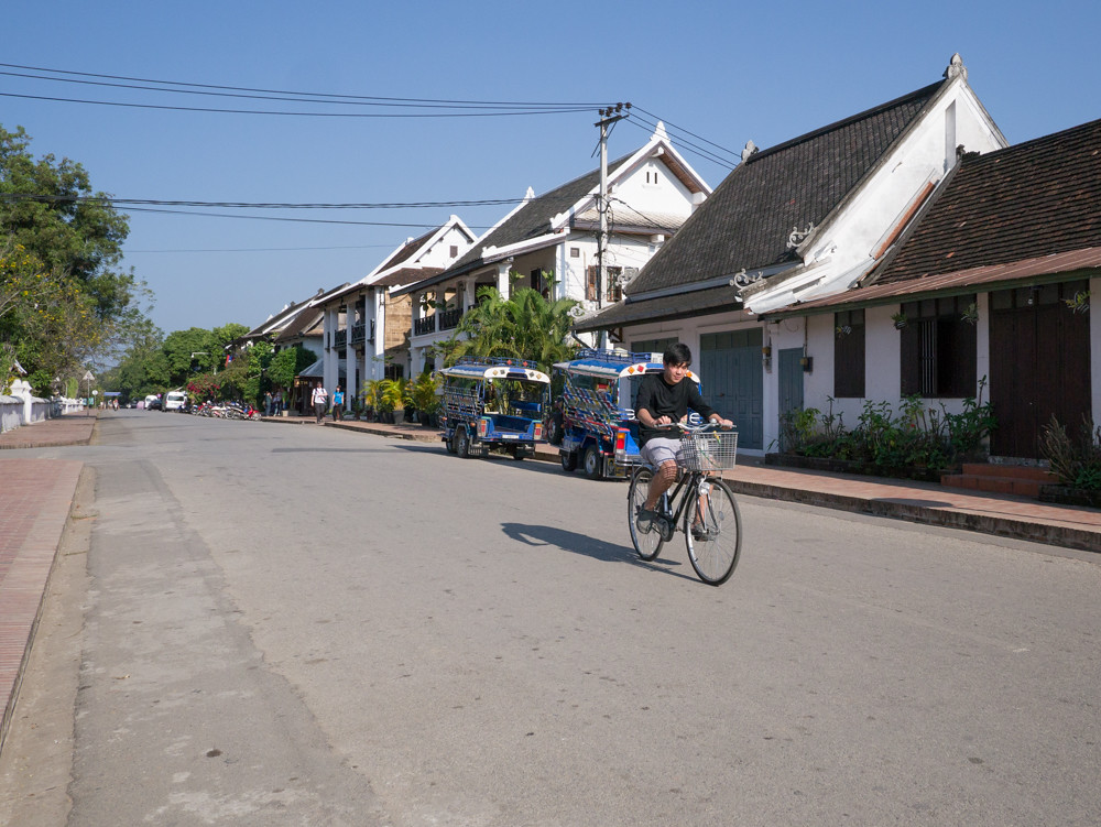 Luang Prabang high street, middle of the afternoon. I had to wait for this bicycle to turn up so I could include some traffic…