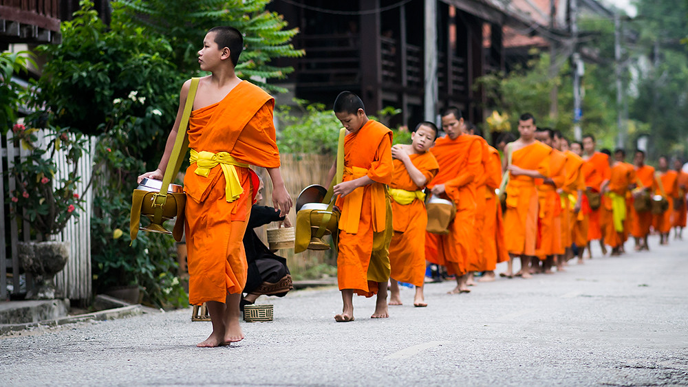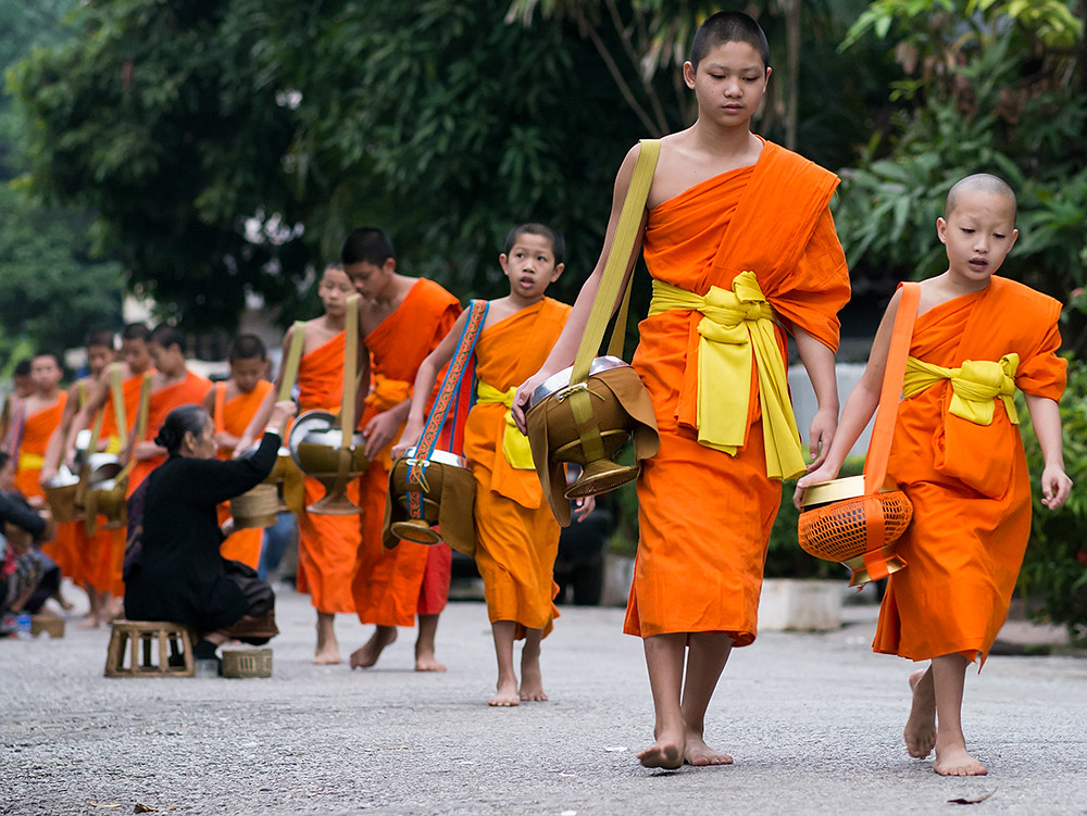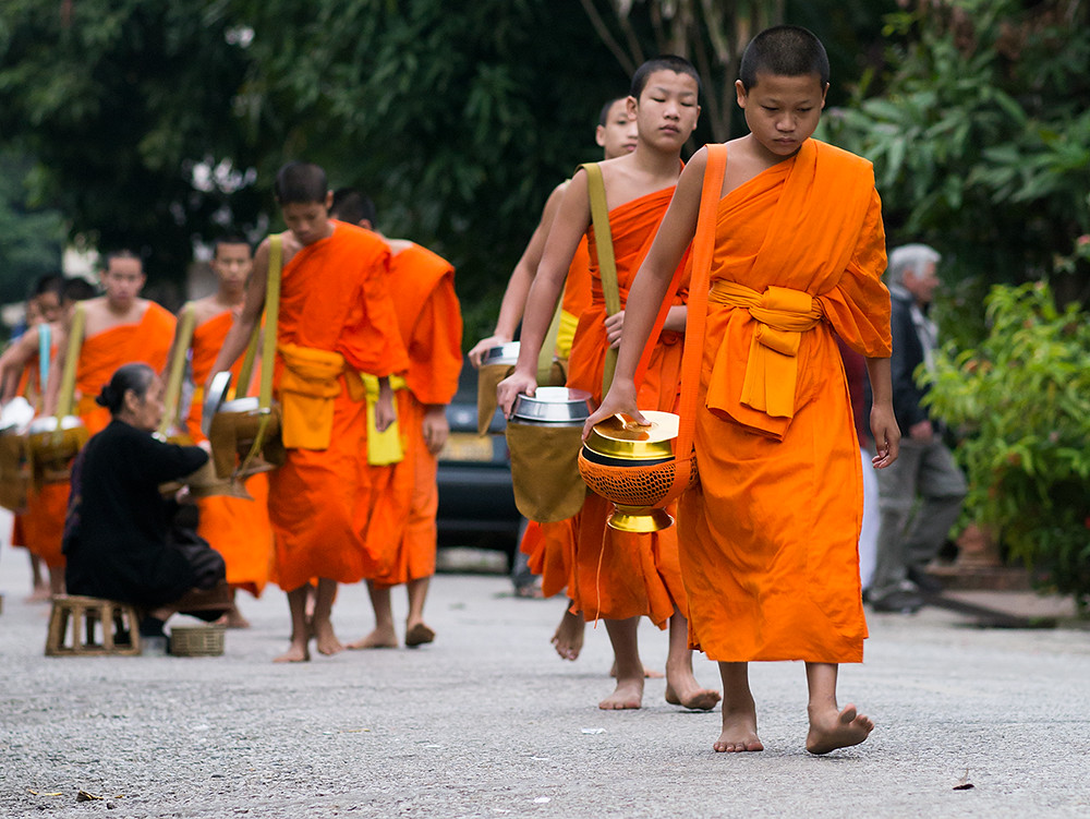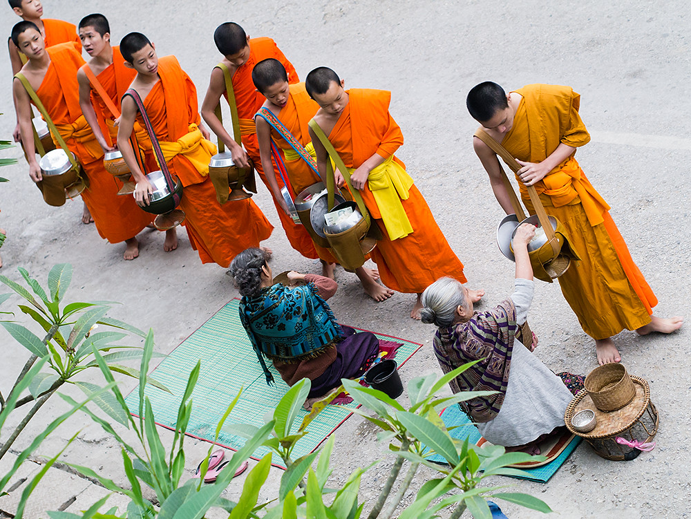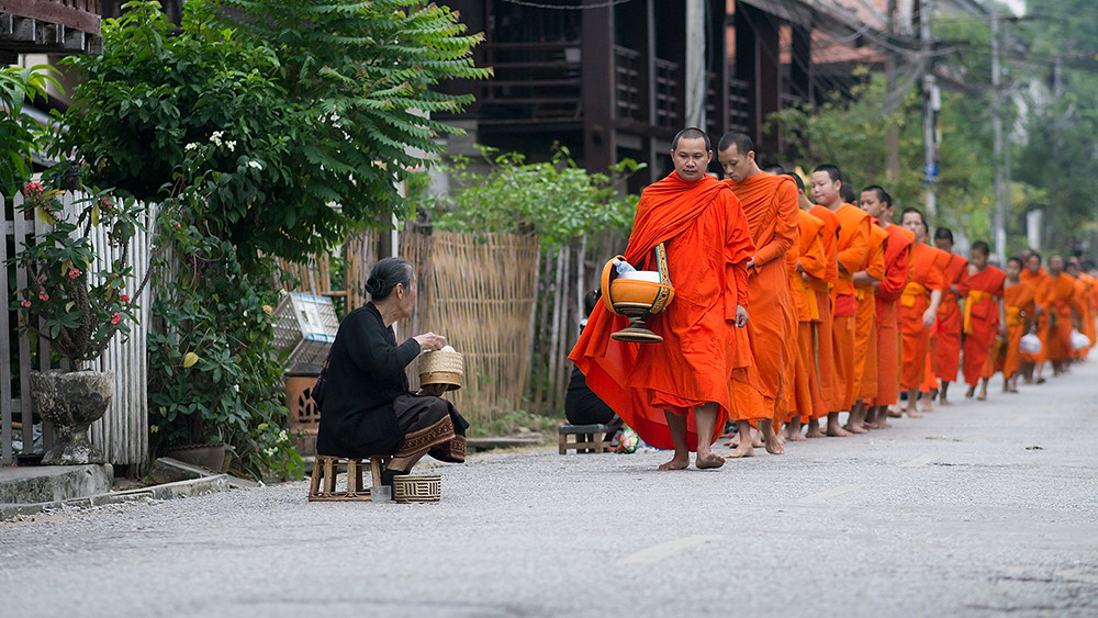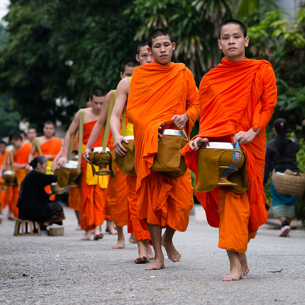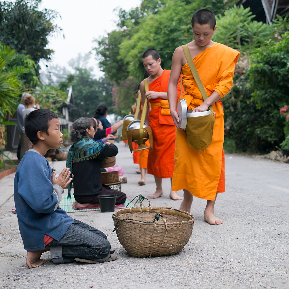I am not an early riser so have rarely seen monks collecting alms on the streets of Thailand; but what I have seen has been a monk or two walking along a street collecting alms as they go. In Luang Prabang it is quite a different affair, with large numbers of monks walking in single file through the streets.