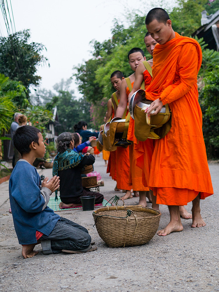 It’s a great privilege to photograph, although the low light makes it a little tricky, and it’s important to show respect to the monks and the alms-givers while getting your shots. I tried to stay a reasonable distance away, and use a long lens if I wanted to photograph the monks head on. Of course, there were the usual inconsiderate jerks sticking cameras into monk’s faces and using flash. None of the idiots were Micro Four Thirds users I was gratified to note.