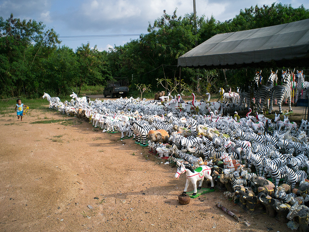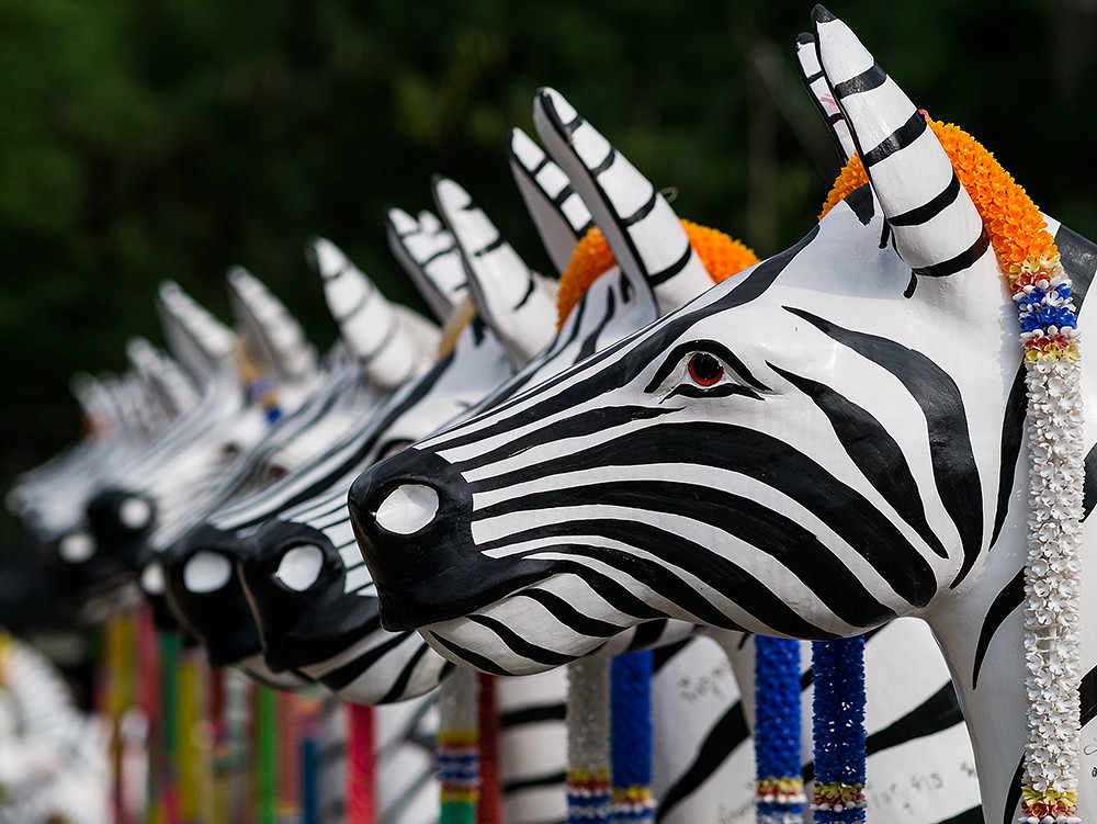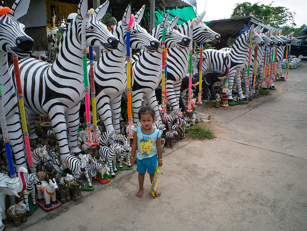 On my way to a location to take some shots in support of an upcoming crucial “how does the Olympus 60mm macro compare to the Olympus 75mm for general shooting” post (you have been warned), and I pass a couple of shrines which sport an unusual zebra theme. I recall a brief post about this place a couple of years ago, but the population of African equids (yes, I looked it up) has blossomed considerably since then.