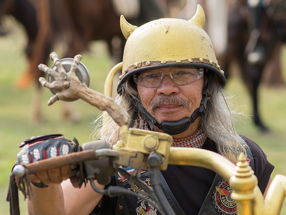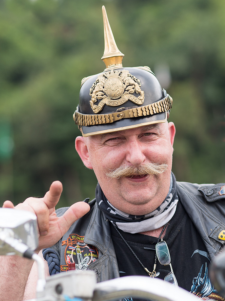Of course you didn’t need to go to the lunatic fringe to find characters, there are plenty to be found among the bikers themselves. They may dress up in leathers and cover themselves in badges proclaiming they are the devil’s bad boys, or similar; but they are actually just good humoured guys who like bikes.