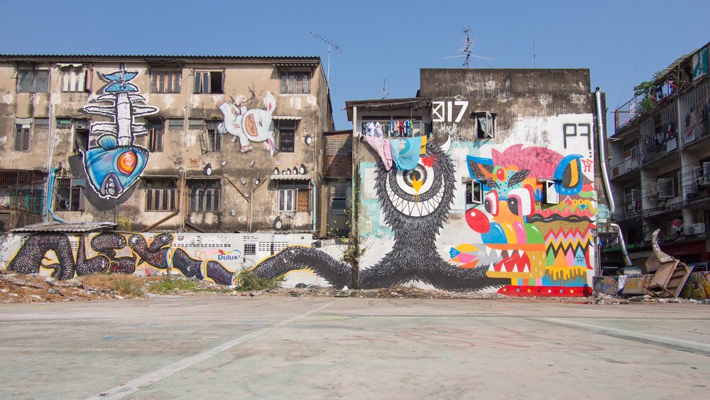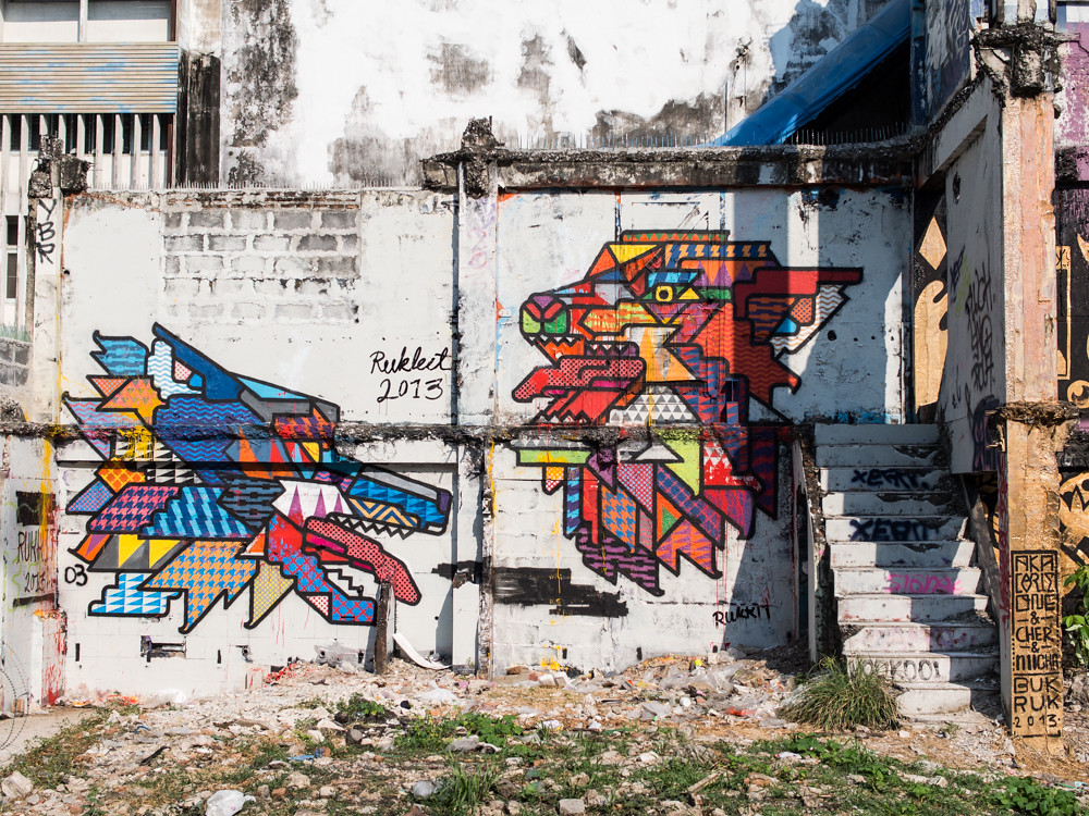 When I found myself with a spare couple of hours in Bangkok yesterday afternoon, the only sensible choice seemed to be to check out the Bukruk Street Art Festival.