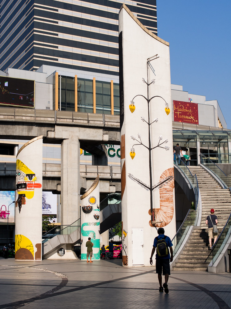 I started my journey outside the Bangkok Arts Centre where a wall and some columns had already been the subject of attention: