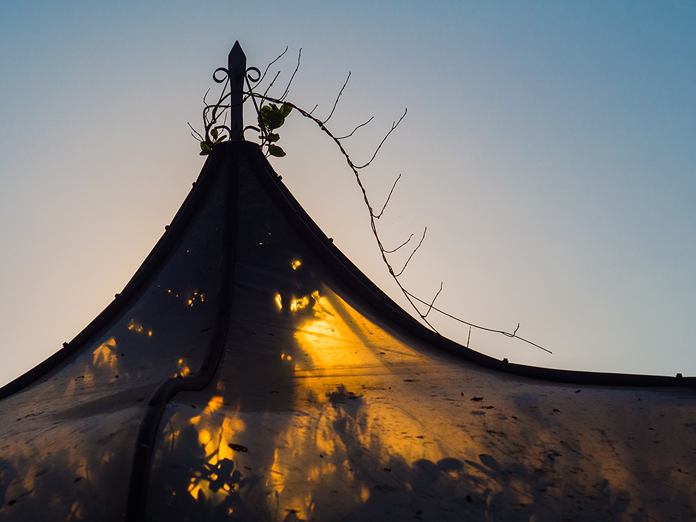 Lit by the setting sun.