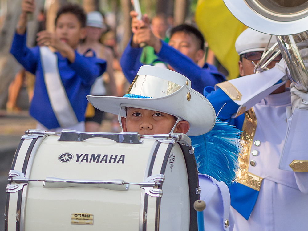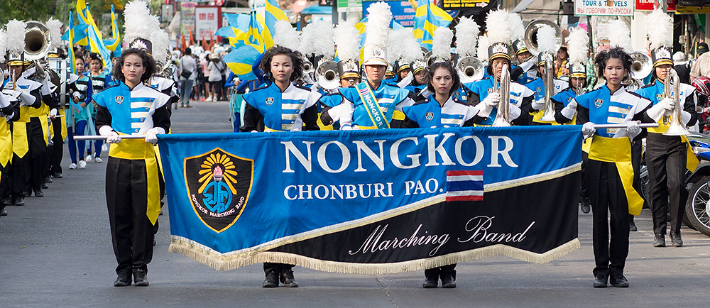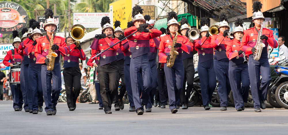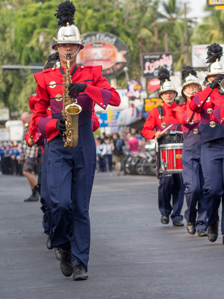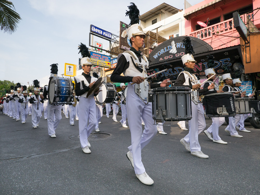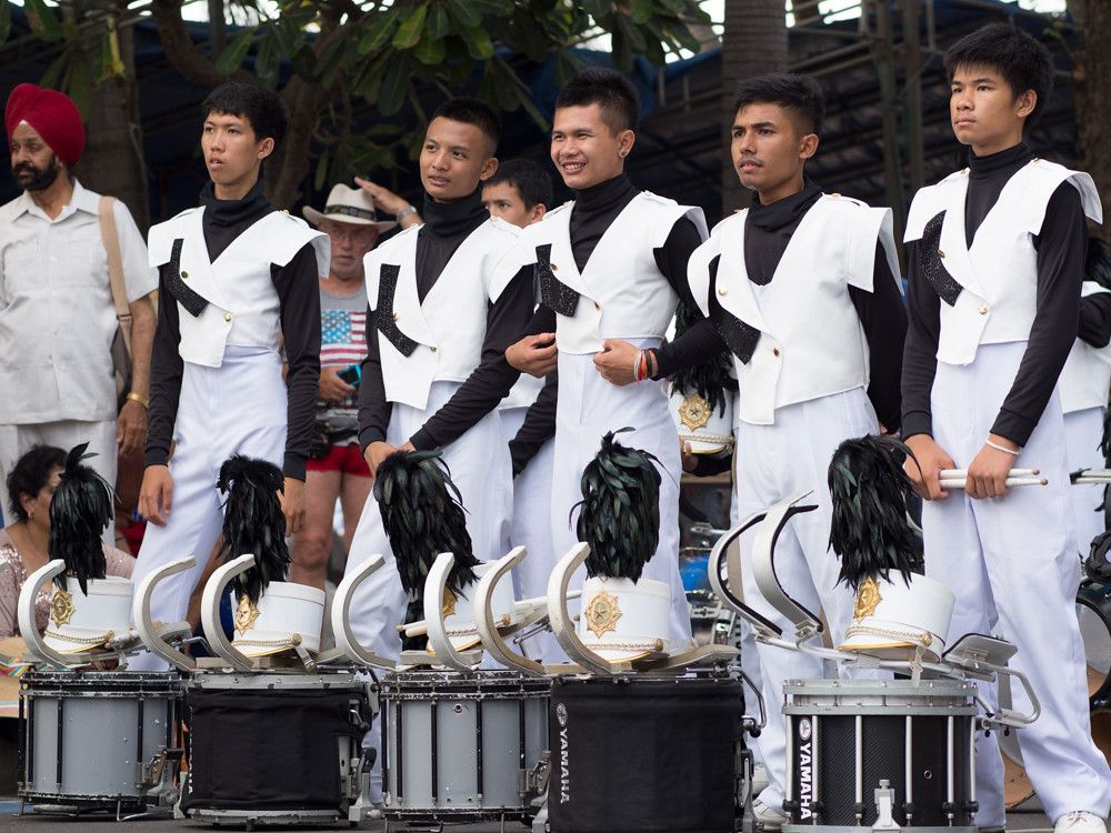 As you will no doubt not have known, the 2nd of April marked the Thailand International Marching Band Festival. Apart from a few posters around town, there was no publicity; and the poster provided the date but not the location or the time. Some rooting around with Google provided a timetable, and sticking my wife on the phone to City Hall provided the location, Beach Road.