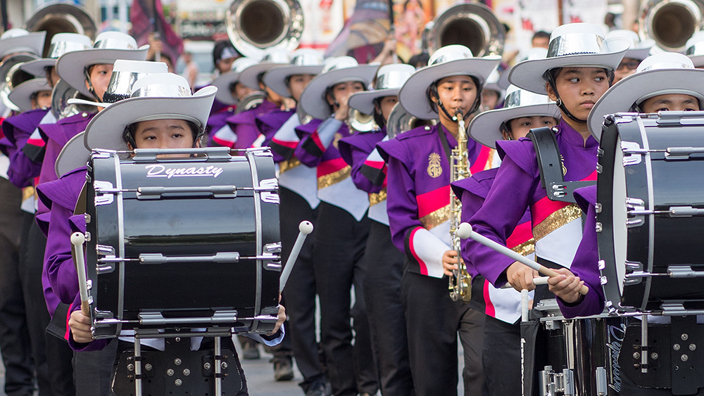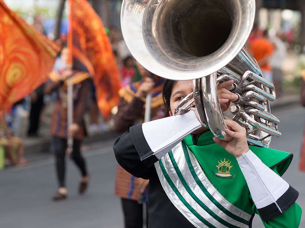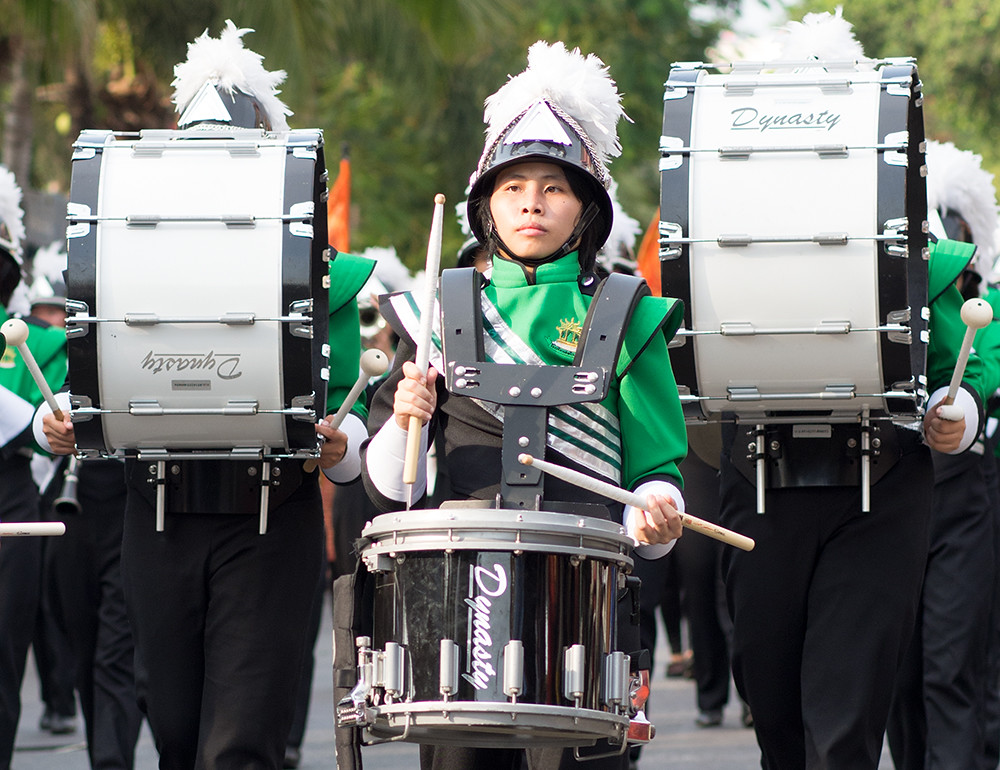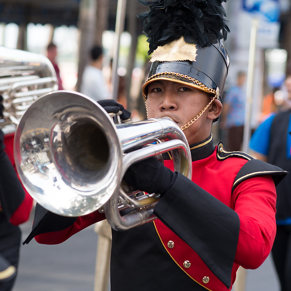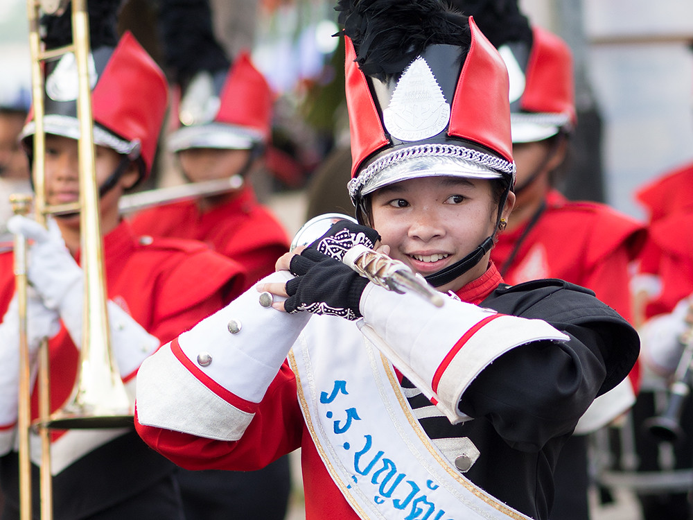 As you will no doubt not have known, the 2nd of April marked the Thailand International Marching Band Festival. Apart from a few posters around town, there was no publicity; and the poster provided the date but not the location or the time. Some rooting around with Google provided a timetable, and sticking my wife on the phone to City Hall provided the location, Beach Road.