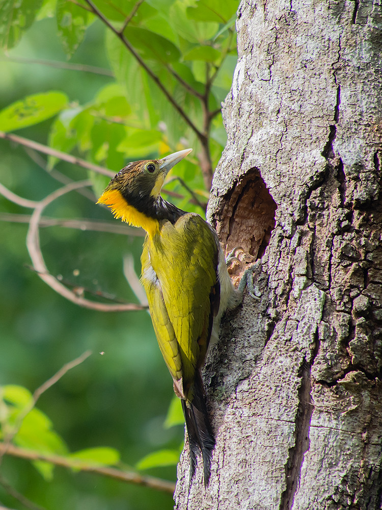Then it started to rain and it was suggested we take shelter under the eaves of a building which just happened to look out on a tree containing a woodpecker nest. As we arrived, the woodpecker flew out of the tree and the owner of our resort, who had joined us for this shoot, advised we would now wait up for an hour for the bird to return. So we set up our cameras and waited.