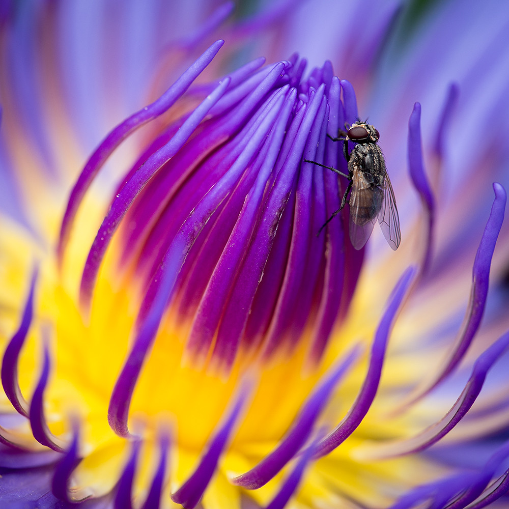 I spend several minutes trying to move the focus point around the Olympus screen to line up with the ever-moving flies; without success. Then I remember a feature of the E-M5 whereby I can touch the screen and the camera will focus on that point and take a shot. So I do that and am rewarded with several in-focus images, of which this is my favourite: