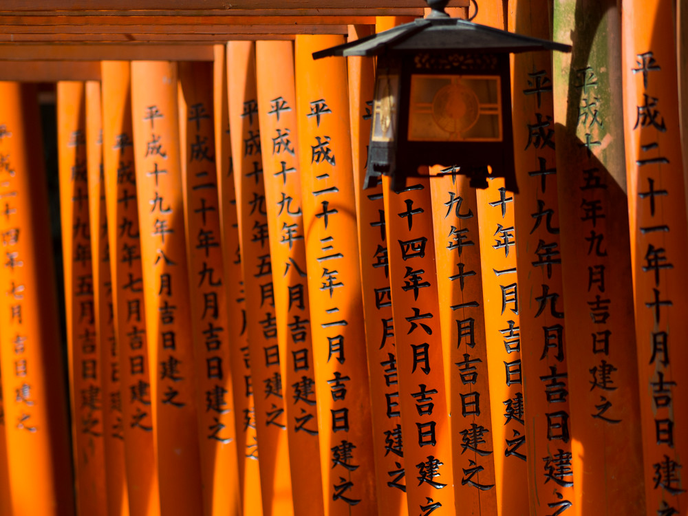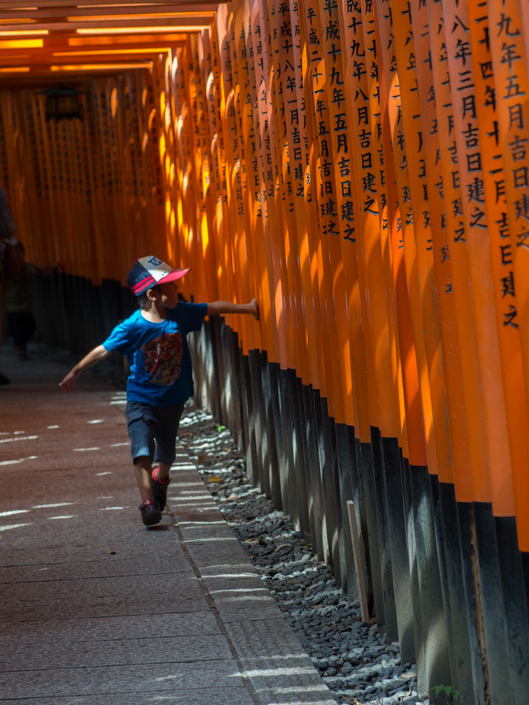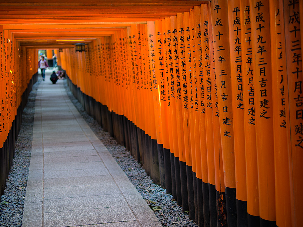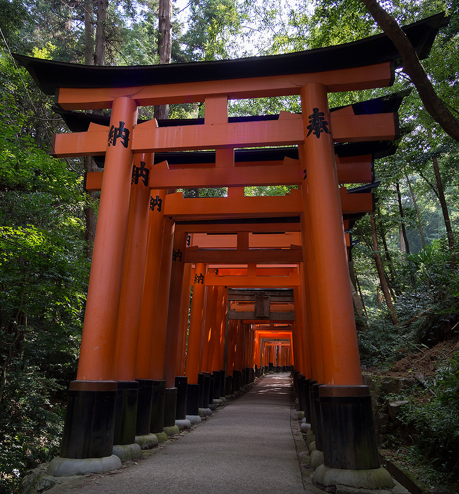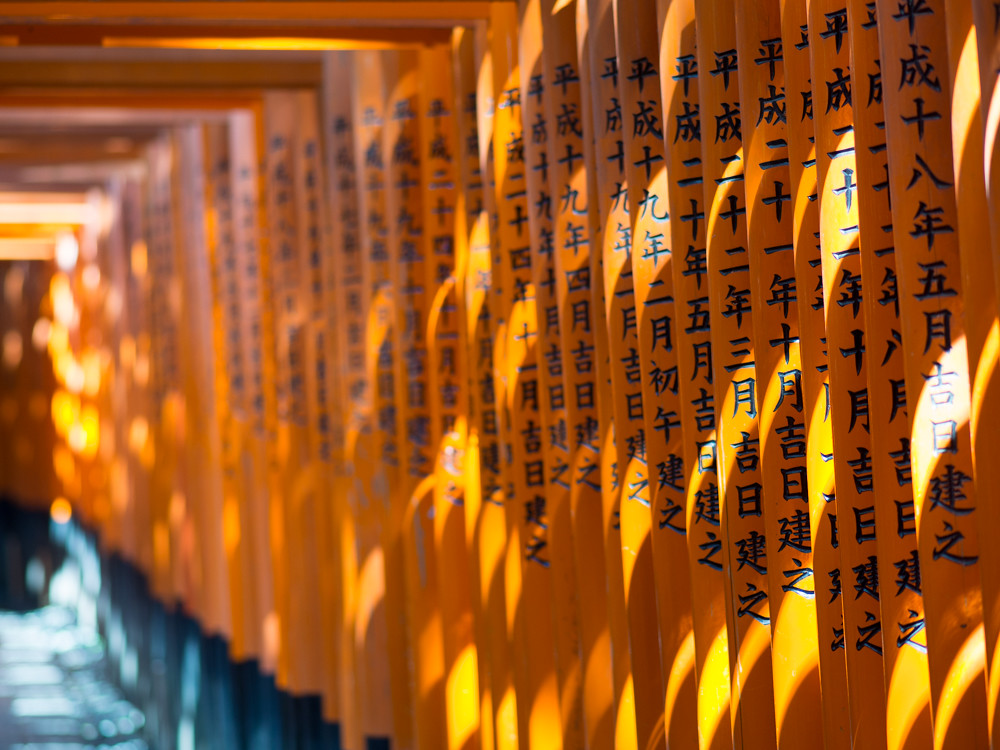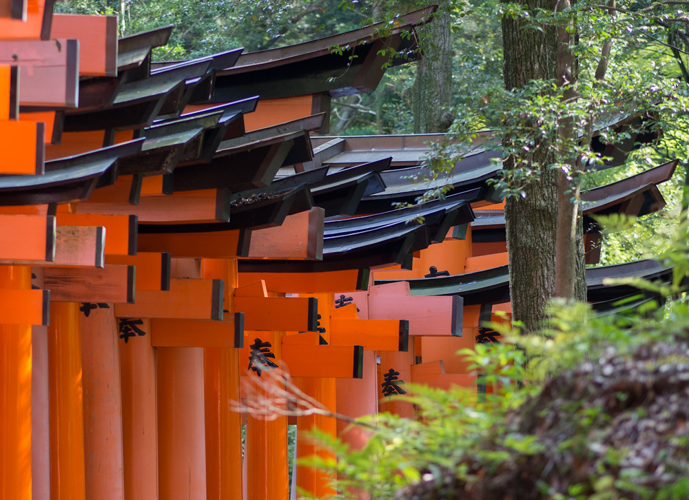 But turn around and look down the trail and you will find that each torii is inscribed with the name of the donor; typically a business. This is because the shrine is dedicated to Inari, the Shinto god of rice and a patron of business.