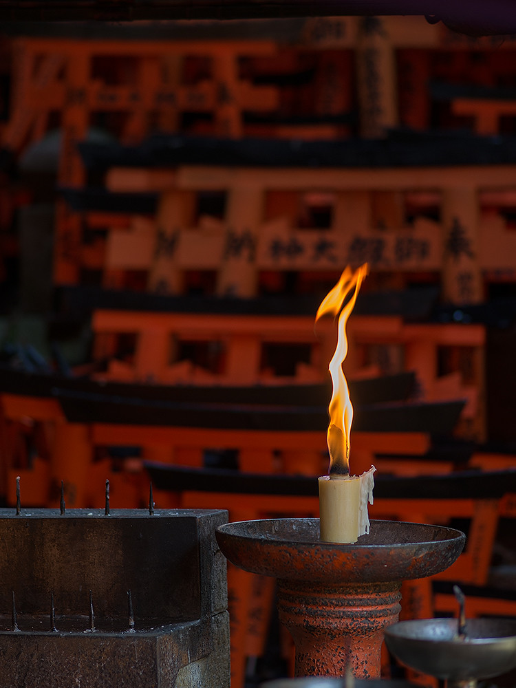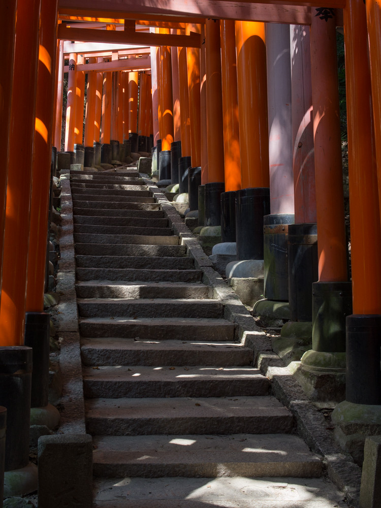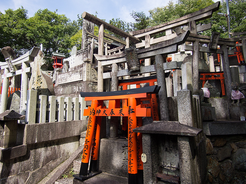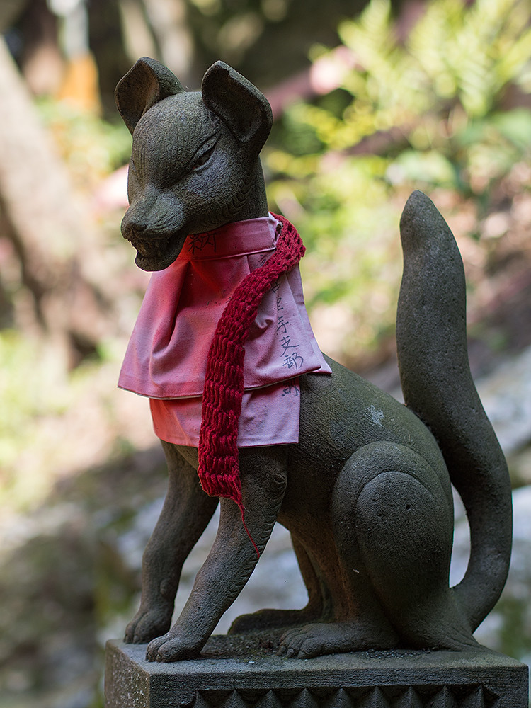 Along the way we would come across little shrines featuring mini-torii and statues of foxes, Inari’s messengers: