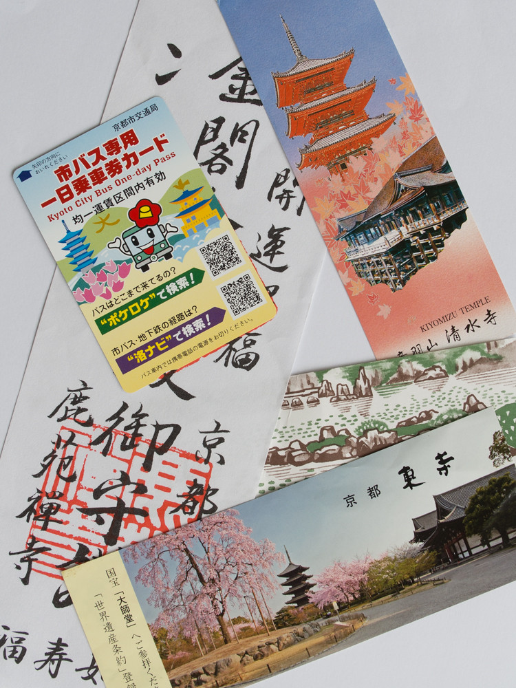 Cute attraction tickets, with a bus day pass; one of the ways of getting around Kyoto if you can figure out the system