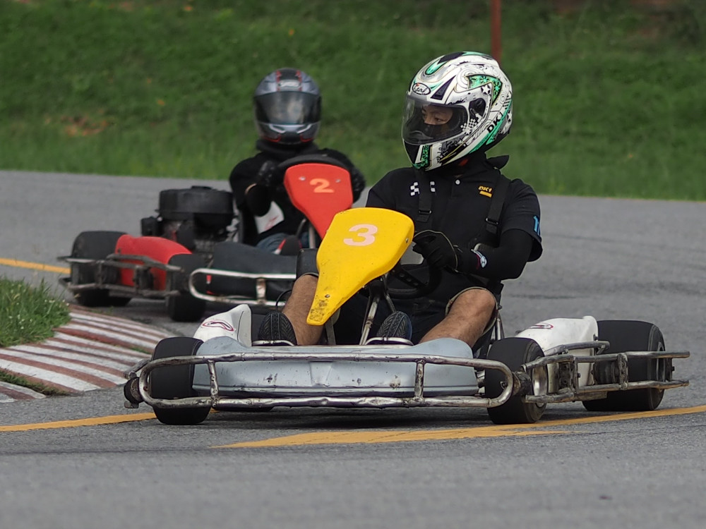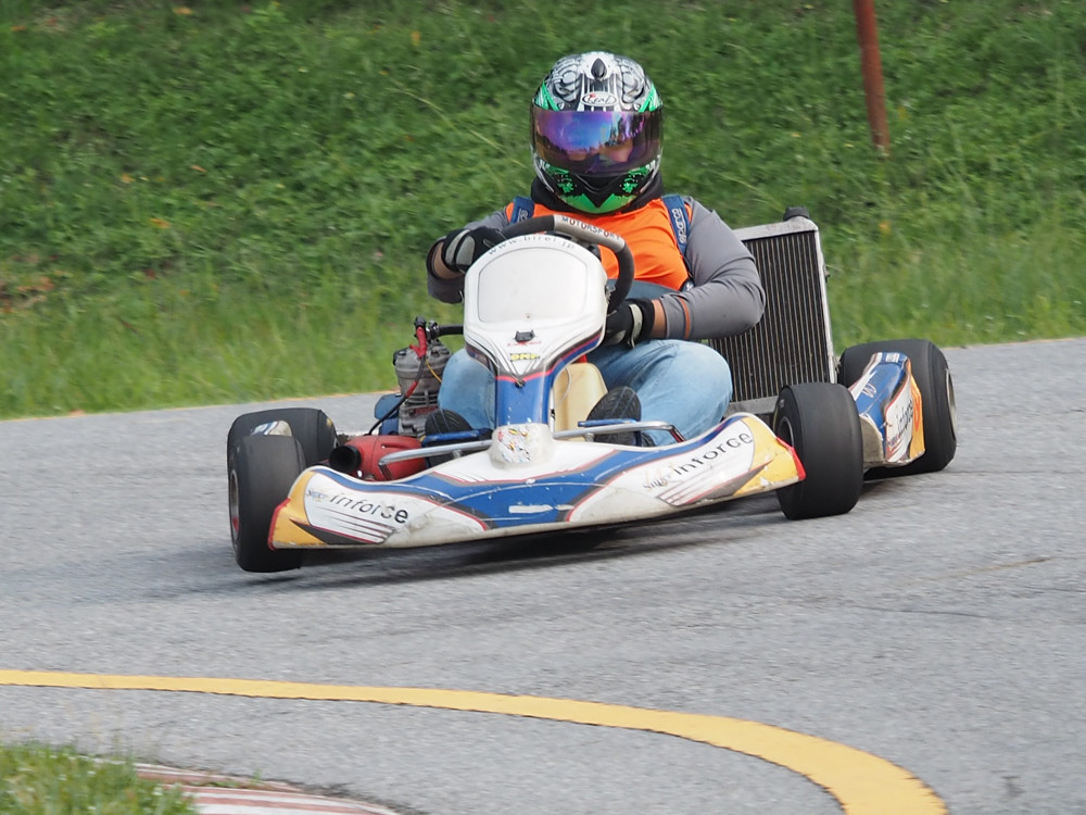 To evaluate the tracking performance of the camera I stood by the side of the road and photographed cars and bikes coming towards me. Not at all interesting photographically, but I will be sticking the results on microfourthirdsinfo in due course. For a more real world experience, I went to a kart track this afternoon and took a few shots before the rain came down and threatened to test the waterproof capabilities of Kevin’s camera (but I had already soaked it in an oily puddle earlier to test this feature and it had only leaked in a couple of places).