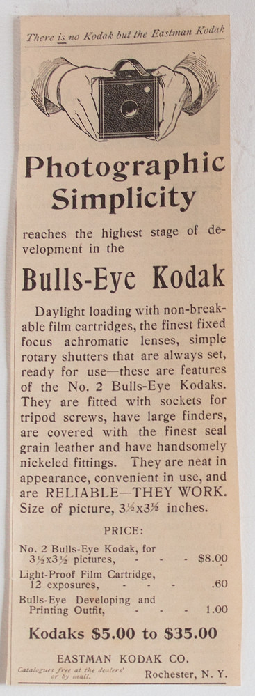 So there we are gentle readers, the 1896 Kodak Bullseye 2. A pointer to the future or a pointless diversion into miniaturisation and complexity? Why don’t you write to our letters page; sorry, our “forum”, and tell us what you think?