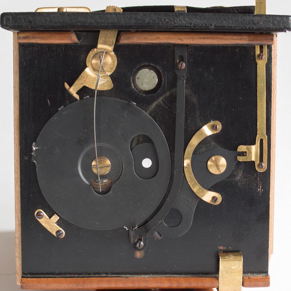 The first control operates the shutter. Push the lever to one side to open the shutter, and then after counting the required number of seconds, push it back to the starting point to close the shutter. So far, so normal. But the next control is a bit of a game-changer. Pull it up and then operate the shutter. In an act of frankly staggering mechanical complexity, the shutter will open and then close again!! Kodak reckon this exposes the shutter by about 1/60th of a second; but why anyone would want such a fast shutter speed is beyond us. We have always been open the shutter, have a cup of tea, close the shutter sorts of chaps; but this Eastman fella reckons that his new films will accommodate faster shutter speeds. Seems a little reckless to us. Whatever next; 1/100th second? Ha ha!