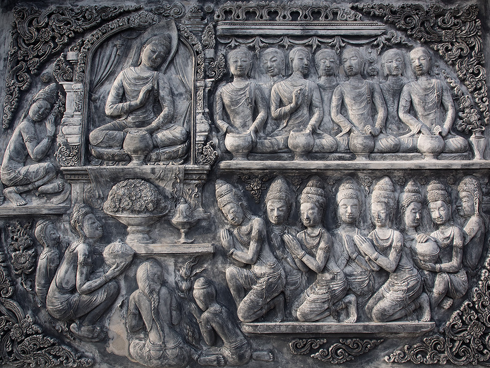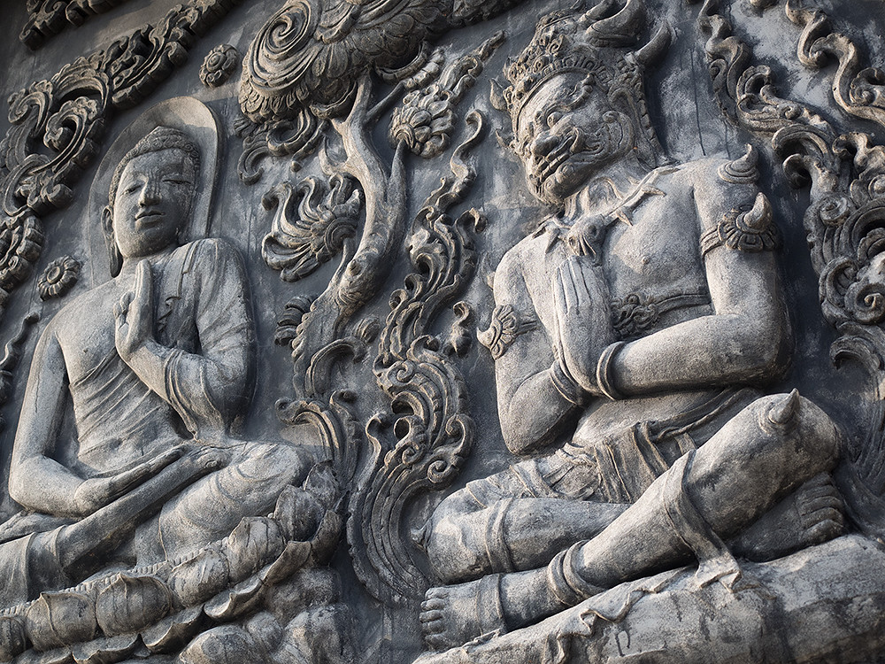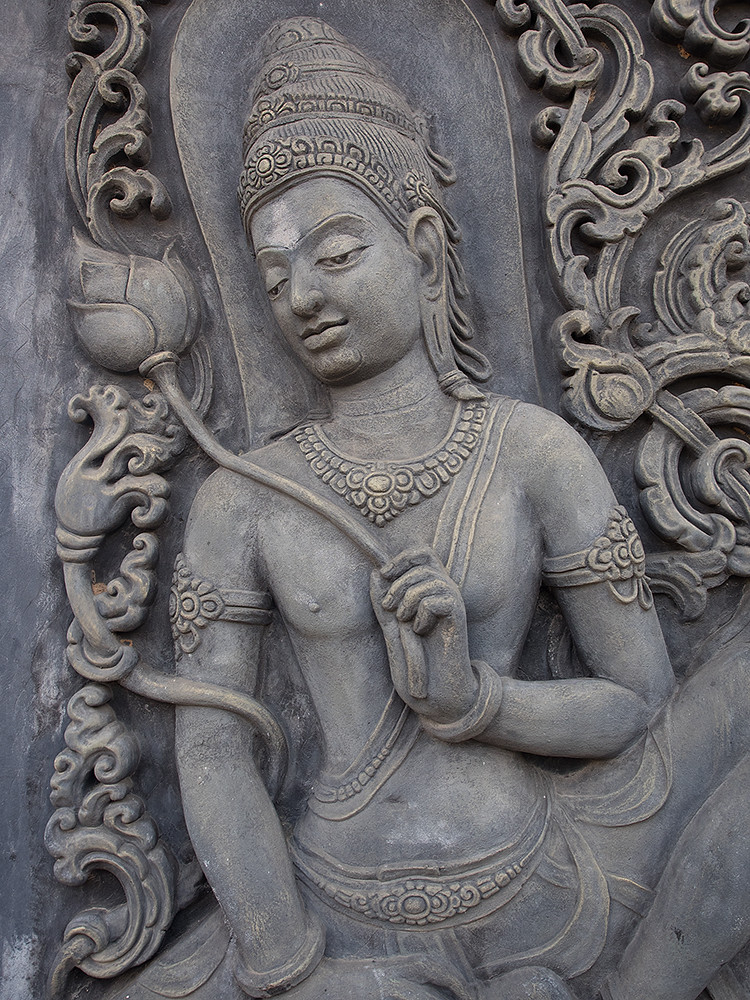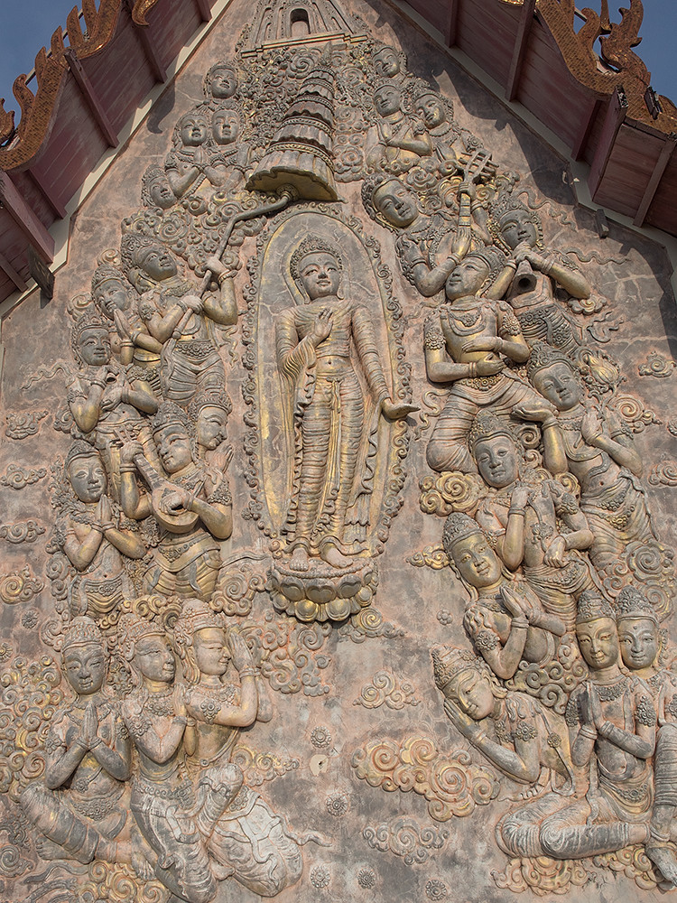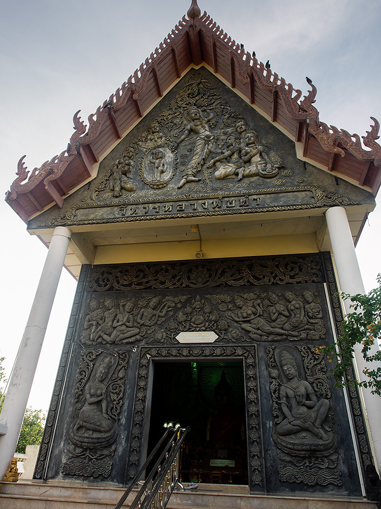 We found such a place this afternoon. A tiny temple close to Sattahip with quite exquisite wall carvings. We had been there before but I was playing with my pinhole then; so felt the carvings deserved some proper photos this afternoon.