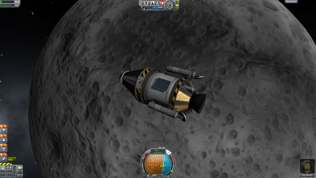 Next step, the moon, or Mun which is one of the two moons of Kerbin. Just getting there required playing around with rocket design such that there would enough fuel. Then I had to place rocket in Kerbin orbit before plotting a course that would intercept with the Mun; more brain ache. But finally, Scientific Sid blasted off on its historic mission.