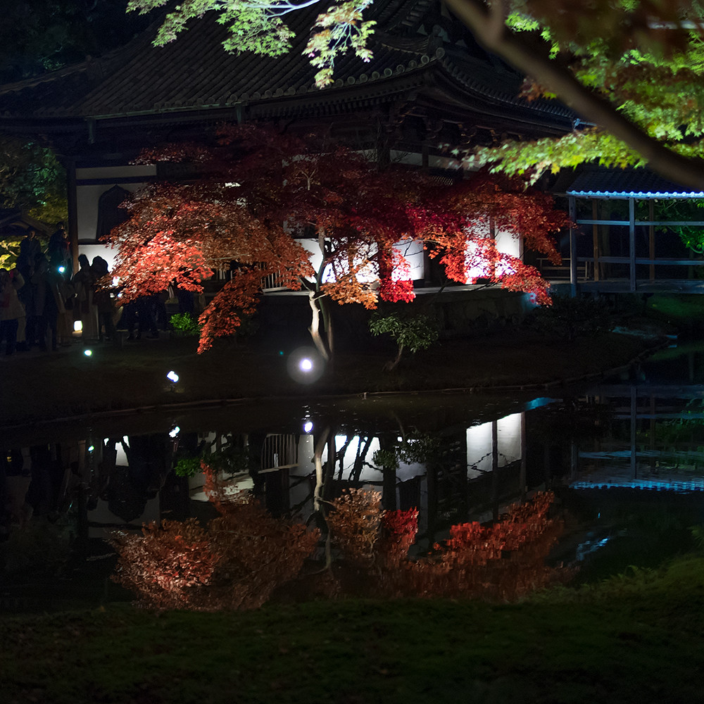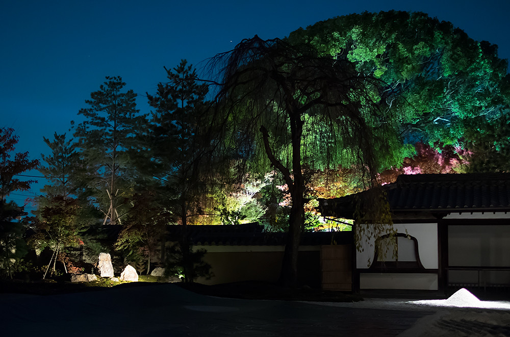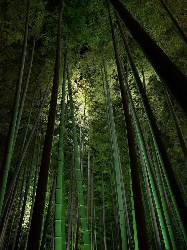 Then a walk through the gardens and exiting through a bamboo forest, suitably lit: