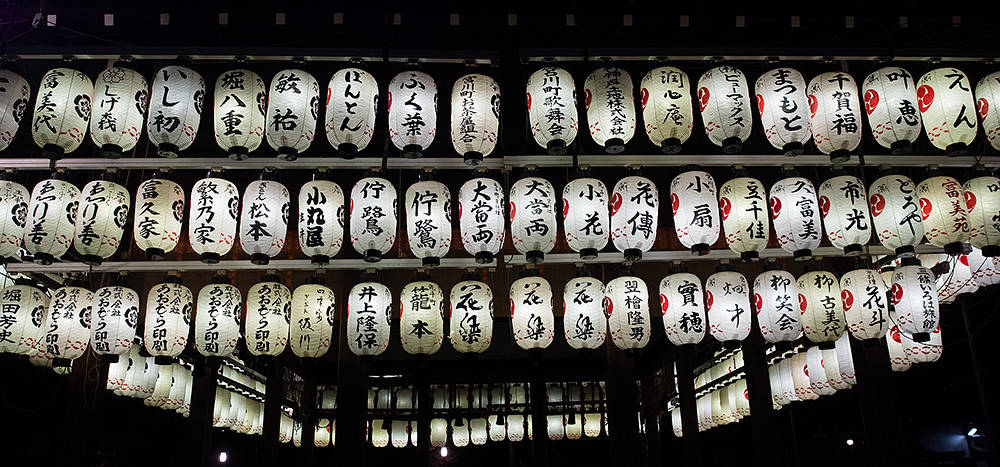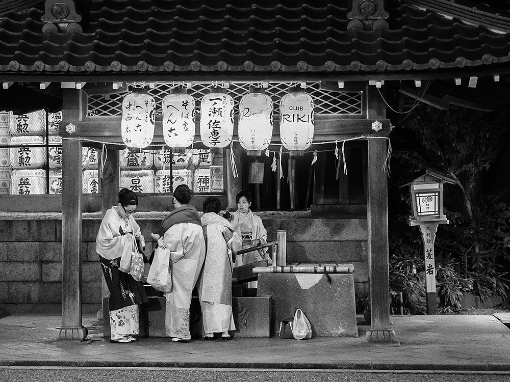 A quick meal, and then as evening set in it was off to check out one of the temples that offered illuminations in the evening. Some lanterns and ladies en route: