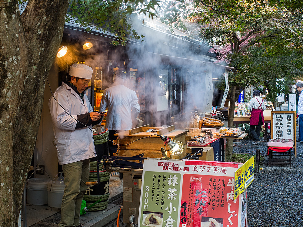 Disgorged into the very cool morning air and we started the climb to Sanzen-in temple, the main attraction. On the way there were outlets offering sustenance and souvenirs: