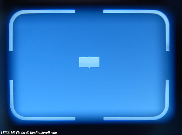 If you could stomach the price, the main attraction of the M3 was the viewfinder, which at 0.91 magnification meant that your view of the world was essentially life sized. No Leica since the M3 has offered this level of magnification (mainly because it precludes you from using lenses wider than 50mm). This is the view through the M3 viewfinder (if you are looking at something blue):